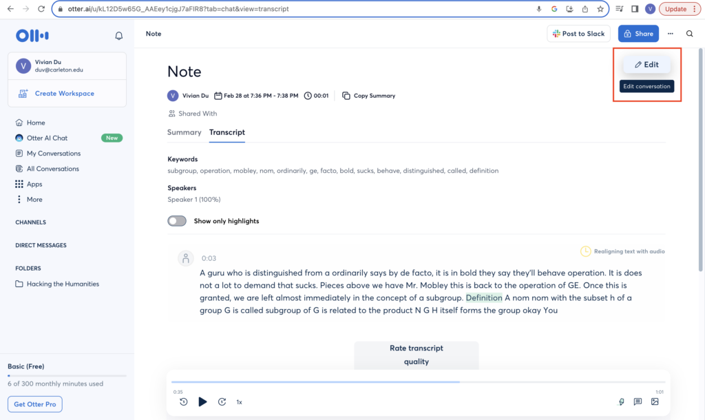 Wow, I didn’t realize that Otter could join a virtual meeting or that you could share and collaborate on transcriptions. This is a really interesting program, and I also think it might help make DH projects more accessible. Thanks so much for your tutorial!